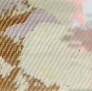 Verso: in alto al centro, etichetta rettangolare bianca con bordi seghettati, dattiloscritta in nero: “GUGLIEMO 3M / DONNA IN ESTASI (2017–2018)”; al centro, etichetta rettangolare color avorio, leggermente ingiallita, stampata in nero: “GUGLIEMO 3M (n. 1982) / DONNA IN ESTASI, 2017–2018 / Tecnica dipinto su tela, figura femminile di profilo, su fondo rosa e fucsia / 160 x 185 cm / [scritto a mano in penna nera:] Provenienza: Atelier dell’artista, Milano”; in basso al centro, etichetta bianca della galleria, stampata in nero: “SPAZIO ARTE CONTEMPORANEA / N. ARCHIVIO 3M-018 / VIA GIULIA 24 – ROMA”