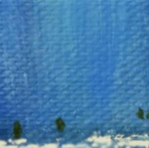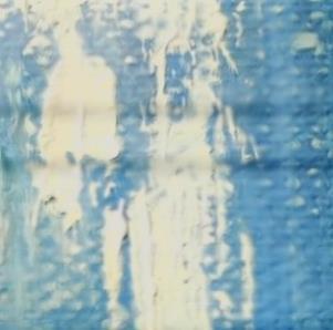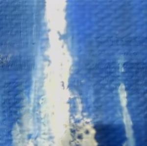 Rappresentazione astratta del Duomo di Milano, resa attraverso campiture di blu intenso e sfumature luminose. La struttura architettonica della cattedrale è evocata da una forma verticale e frastagliata, emergente dal centro della composizione come un bagliore bianco. Le guglie e le verticalità gotiche sono suggerite da pennellate ascendenti, che creano un effetto di luce mistica e trascendenza. Lo sfondo scuro esalta il contrasto, conferendo al soggetto un carattere etereo e spirituale.