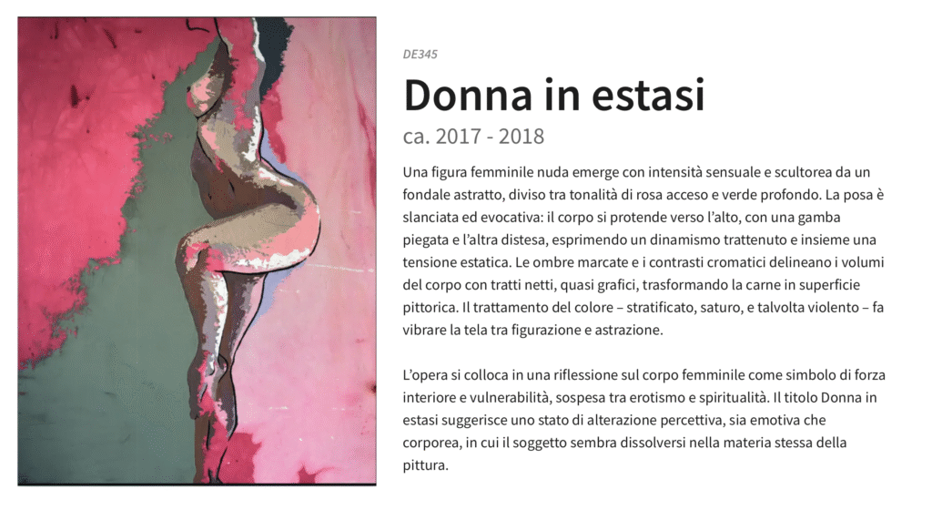 Una volta ottenuto il Passaporto Scientifico la tua opera sarà registrata nel Database Ufficiale OTID. Informazioni, dati e immagini ad alta risoluzione verranno registrati e la tua opera avrà un’intera pagina dedicata accessibile dall’esterno.